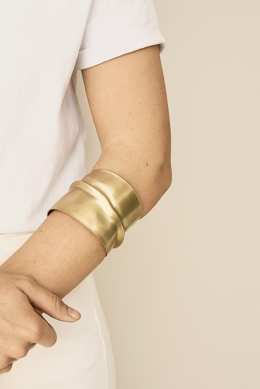 Minimalista e marcante, o bracelete Serena traz o equilíbrio entre força e suavidade. Seu design de linhas simples com detalhe central cria um toque moderno e atemporal. Uma peça dourada que ilumina qualquer produção, perfeita para quem busca elegância sem esforço.